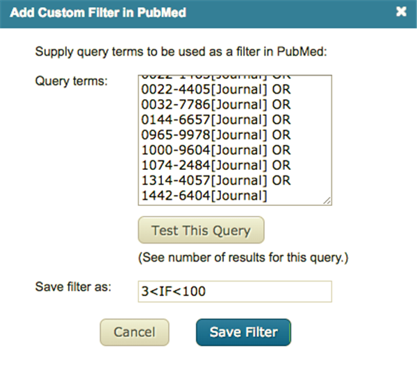 然后打开 PubMed 页面,点击“Advance”进入高级模式,下拉菜单选择“Filter”,粘贴刚才复制的代码,就ok了;