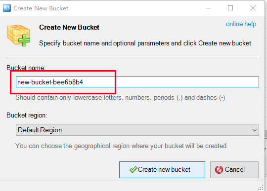 设置桶名:桶的命名规范参见API文档。