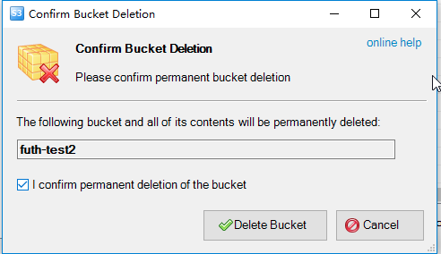 点击删除桶,输入桶名,勾选复选框。