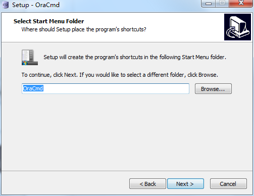 8、选择软件的菜单文件夹,默认文件夹“OraCmd”,点击Next;