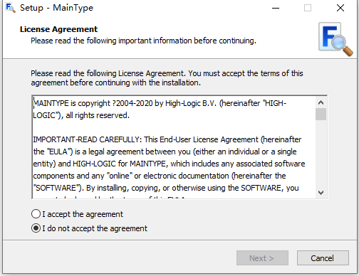 1、下载并解压软件,双击“MainType.rar”进入安装许可协议,点击我同意;