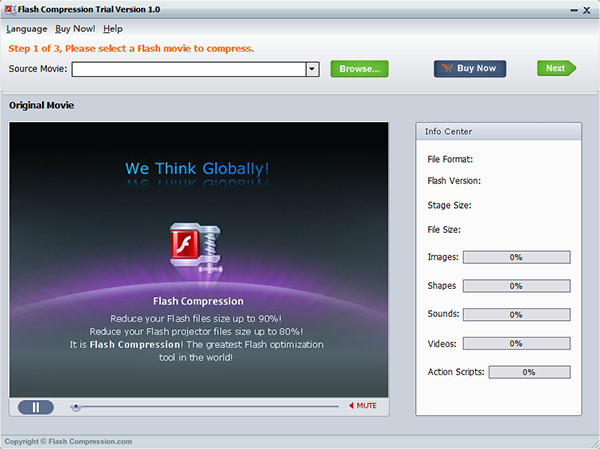 Flash Compression是Flash文件的一种优化工具。我们在2002年发布了我们的第一个版本,它独立于Flash开发环境中作为一个无损优化工具。通过压缩和结构优化,可以大大提高对文件的访问速度,减少了用户的等待时间,节省了网络带宽。目前Flash压缩技术不仅可以对基于Z-LIB技术的电影进行无损压缩,而且可以对质量损失较小的电影进行压缩。最新版本的Flash压缩可以将flashexe文件压缩到惊人的80%。