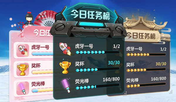 任务榜:任务类型包括礼物、周贡榜、粉丝牌等,动态进度条。支持按日、周、月统计数据。