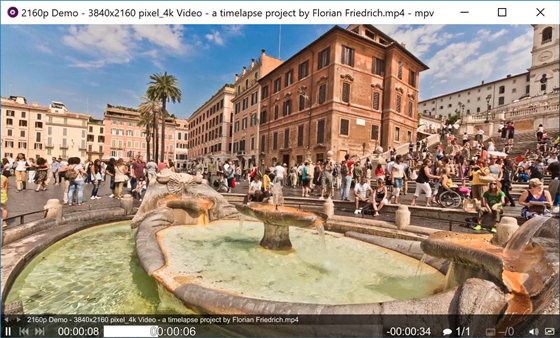 mpv具有基于OpenGL的视频输出,能够播放视频的许多功能,例如通过流行的高质量算法进行视频缩放,色彩管理,帧定时,插值,HDR等。