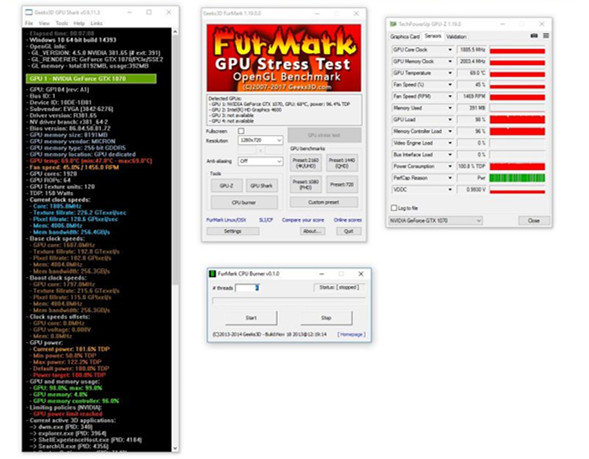 本来FurMark中文版只是用来测试显示卡的OpenGL效能,但是可以拿来当烧机软件使用。它可以让显示卡跑出任何游戏都达不到的高温,以致于只要通过了FurMark考验过的显示卡,跑游戏都不会出问题。