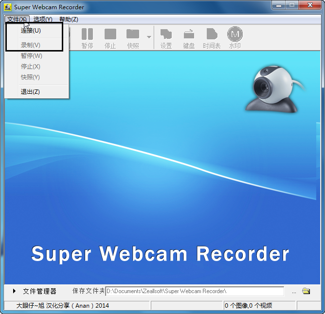 打开摄像头录像王软件界面,并选择【连接】按钮进行连接摄像头。