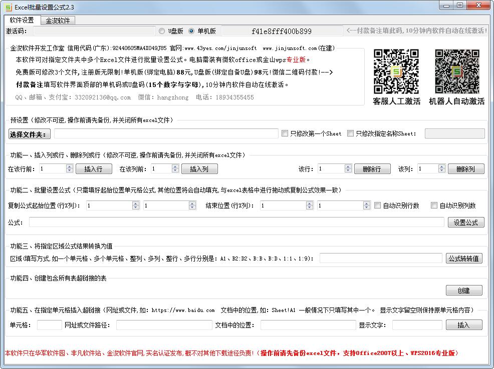 金浚Excel批量设置公式软件 V2.3 绿色版