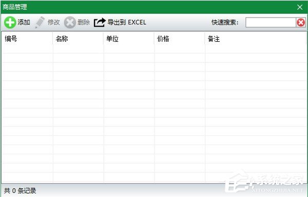第一步:软件右侧选择“设置-商品管理”,弹出商品管理界面,此界面可以对商品进行添加、修改、删除、导出到Excel等管理,界面如下: