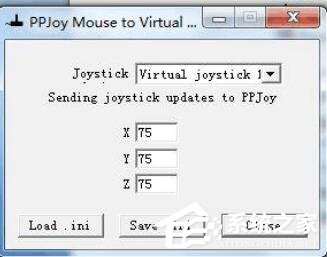 5、点击ppjoy mouse快捷图标,设置轴的灵敏度,您可以自行选择,(:X=20 Y=20 Z=27),设置完成后点击save。