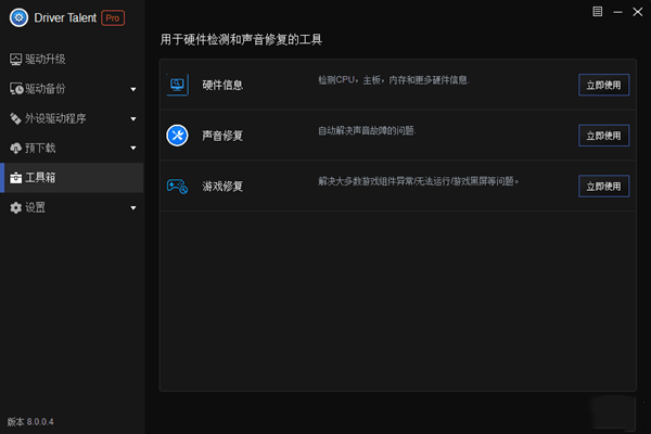 Driver Talent可以快速扫描并找出所有无法正常工作的计算机驱动程序,然后通过提供解决方案(如修复,重启,备份,重新安装)来智能地修复和修复它们。这非常方便,为您节省了大量精力和时间。