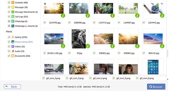 4、扫描您的Android手机后,所有项目都会详细列出。您可以预览每个特定项目,然后选择需要恢复。