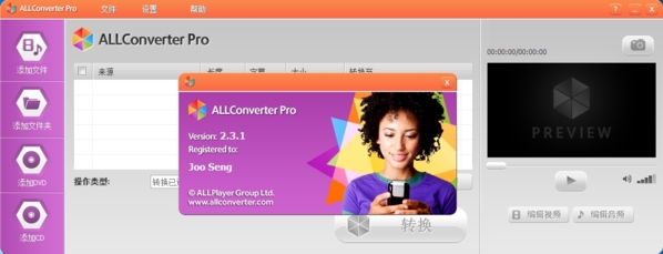 ALLConverter Pro中文版强大的视频合并功能,您可以将视频或音频文件连接在一起。
