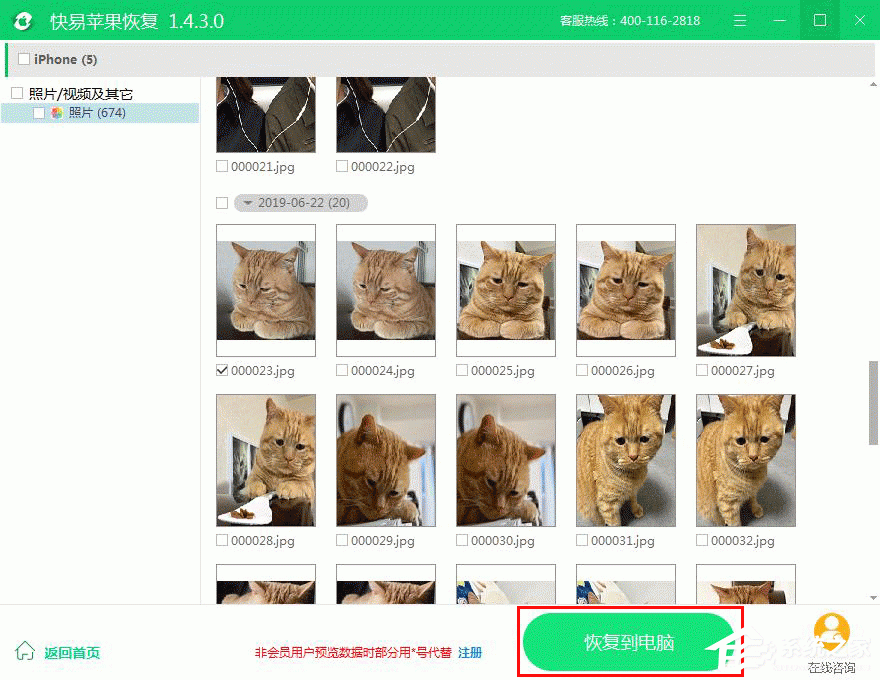 六、恢复数据:勾选所需要的数据,点击“恢复到电脑”按钮进行恢复。