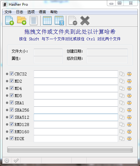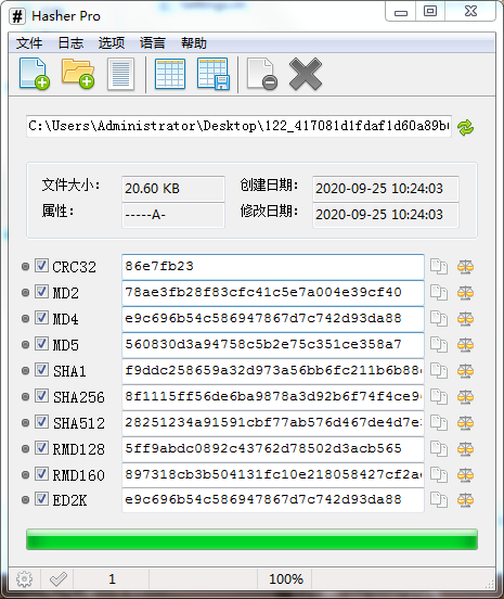 2、支持算法验证文件完整性:CRC32,MD2,MD4,MD5,SHA1,SHA256,SHA512,RipeMD128,RIPEMD160,ED2K