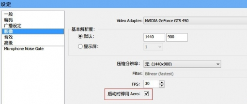 这个AERO特效是Win7系统的主题特效,但是他不利于录制视频,除了会造成录制视频的不稳定之外,还会占用大量的系统资源,所以必须要打勾此项,这就解决了OBS有时候弹出警告对话框的问题了。