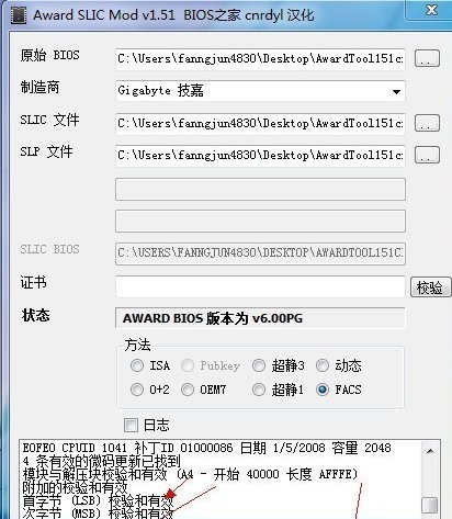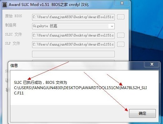 4、点击执行,BIOS中把自动被加入证书文件,自动改名为 MA78LS2H_SLIC.F11;
