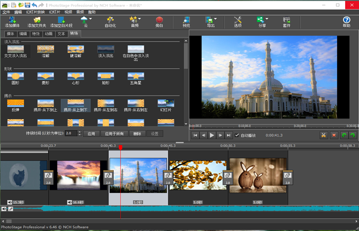 从丰富的转场中进行选择。