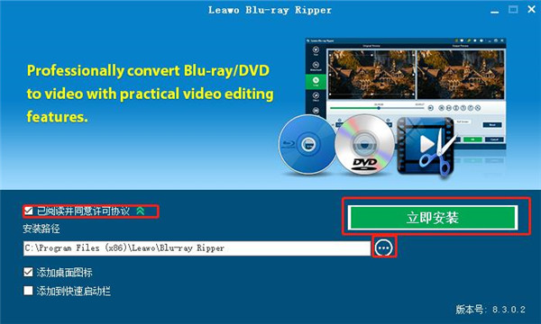 安装向导默认设置的软件默认安装路径为C:Program Files (x86)LeawoBlu-ray Ripper;