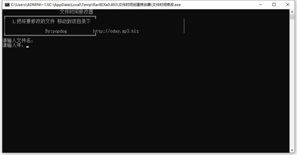 请将欲修改时间的文件复制到程序目录下,依次输入文件名-回车-年-回车-月-回车-日-回车,见压缩包图!帮助你修改文件属性中的‘创建时间’,间‘。完全免费使用。 熟悉windows系统的朋友一定经常会用单击鼠标右键的方法来查看所选定的文件的属性信息。在属性菜单中会列出该文件的创建时间、修改时间和访问时间。这些信息常常是很有用的,它们的设置一般都是由操作系统(也就是由dos/windows等等)自动完成的,不会让用户轻易修改。利用本软件可以突破此限制,自由修改文件属性中的时间。