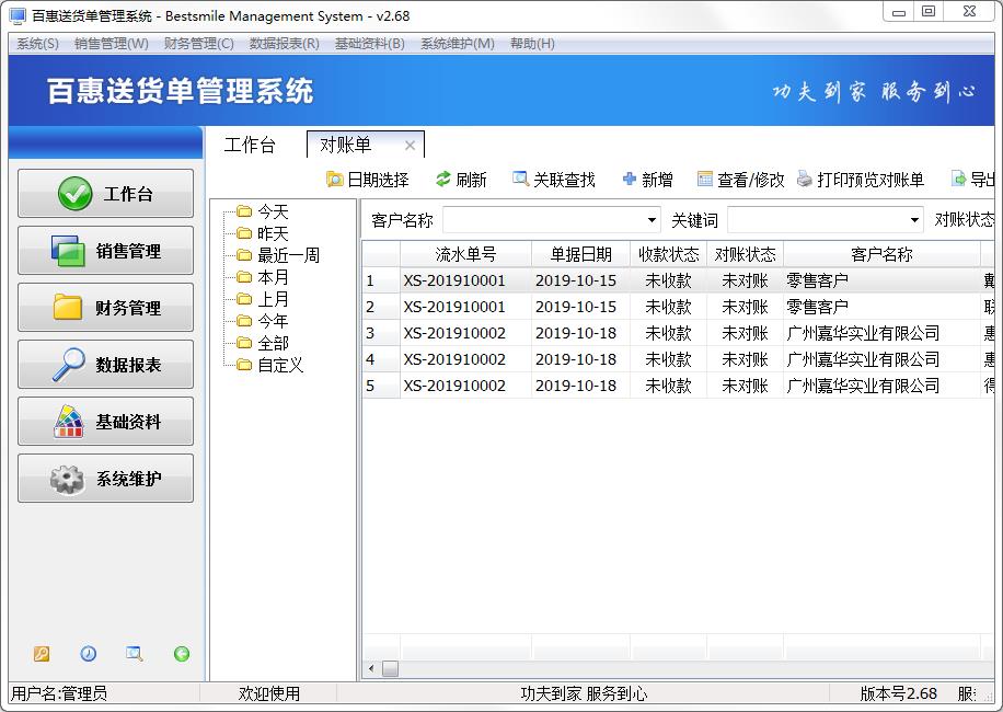 百惠送货单打印软件是一款集送货单打印管理、销售订单、客户对账、客户欠款管理、资料管理、现金记账等功能的送货单管理系统。软件功能齐全,能满足用户的基本需求。