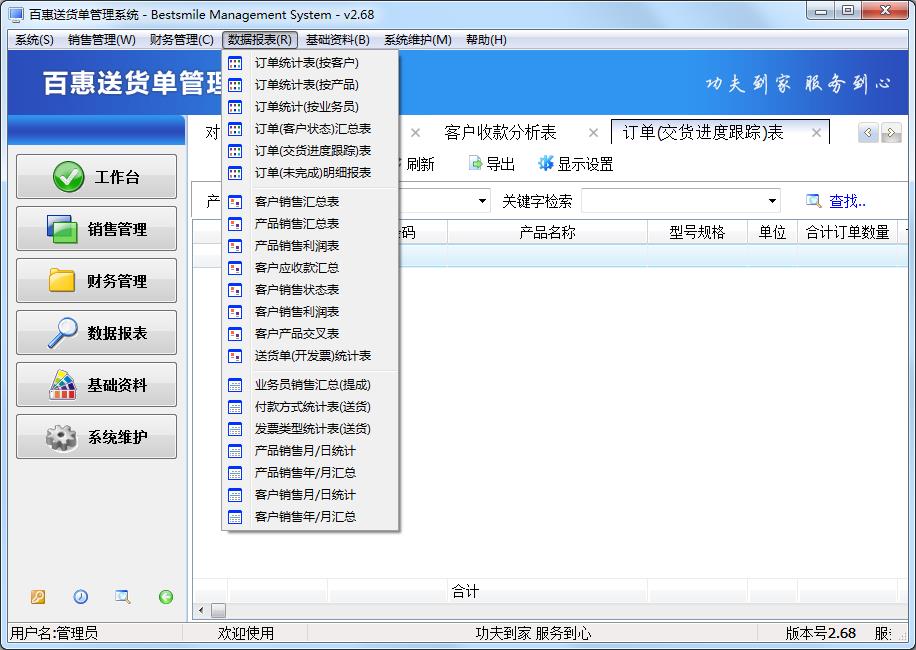 实现订单进度跟踪,销售订单信息一键引入到送货单,自动计算已送未送货数量!