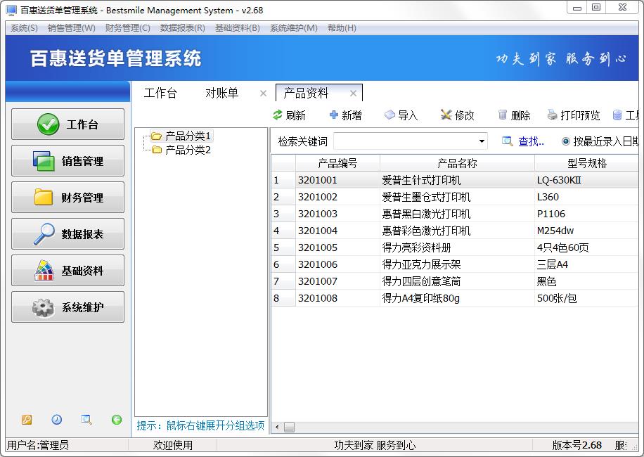 送货单软件可以对产品和客户进行分类管理。同时软件提供多种价格带出方式。