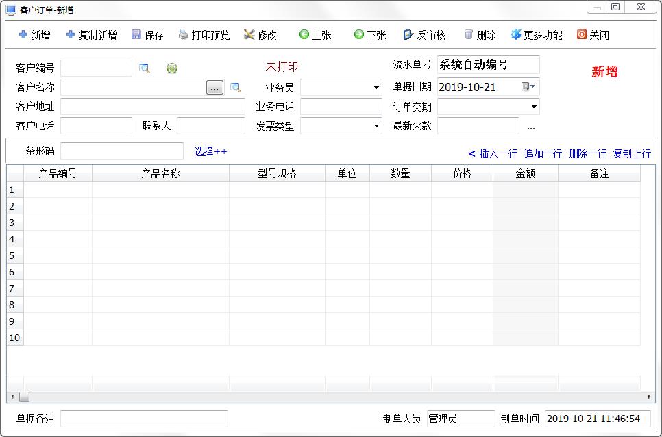 2、支持即输即打:即不用先建好客户资料、产品资料即可直接开单,系统自动帮您保存。