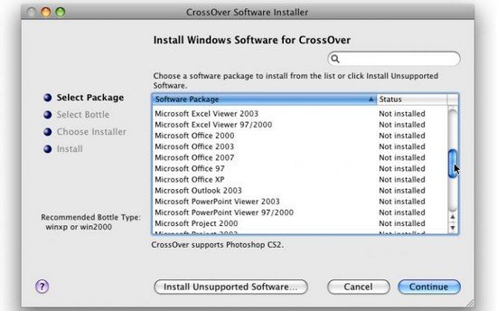 Bottles是CrossOver的一种独特的功能,它允许单独的Windows环境(XP,Win7,等等)被打包,并包含你喜欢的程序。瓶子真的很有用,因为它们让你很容易地备份你的软件,把它从机器移动到机器上。它们还确保为应用程序的需要得到正确的Windows版本。这就像在你的电脑上有几个不同的Windows操作系统。