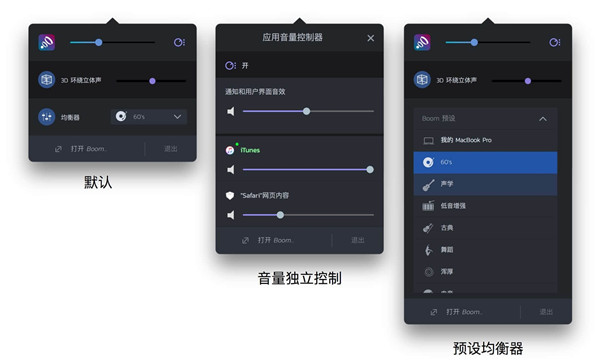 适用于Mac的Boom 3D是系统级的音量增强器,可以安全地将设备音量增加到常规范围之外,以提供强烈而丰富的音频体验。精心设计的音量增强器通过处理音频输出来提高计算机的音量,帮助你发现音乐中的细微变化。