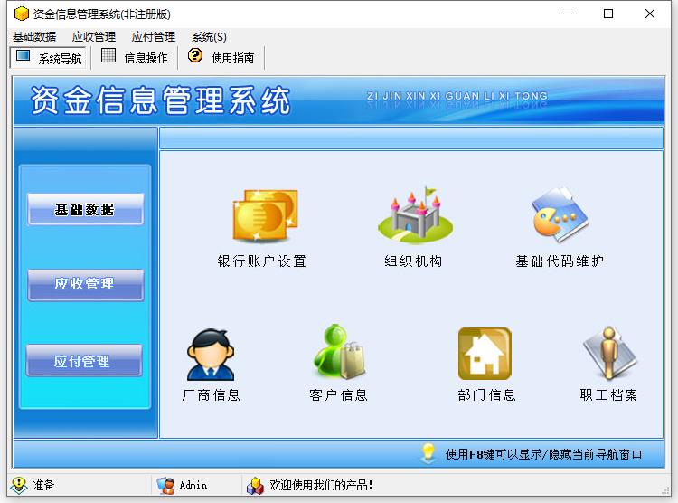 资金信息管理系统是一款简单便捷的资金信息管理软件,可以帮助您记录资金的收入、支出、应收、应付等信息,大幅度提高了您的工作效率,包含应付账款管理、应付明细查询、应收账款管理、应收明细查询等特色功能。