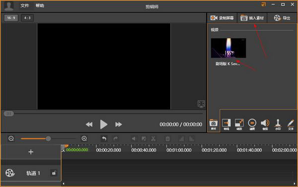 2、然后我们需要点击右上角的【插入素材】将需要剪辑的视频导入;