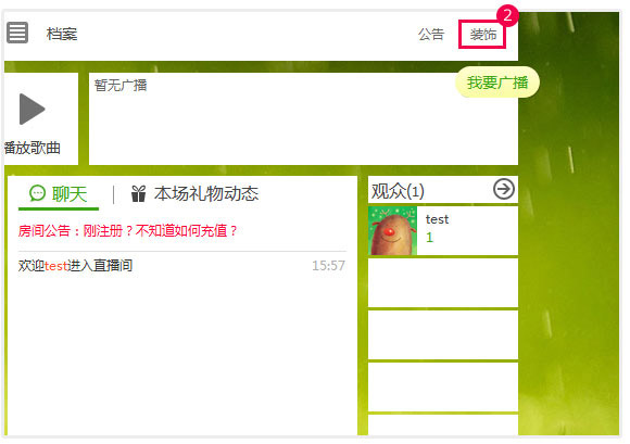 点击房间里“装饰”打开后选择要默认的背景图片。