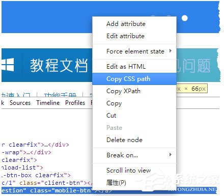 3、在目标节上点右键,选择Copy CSS Path即可将CSS Path复制到剪切板;
