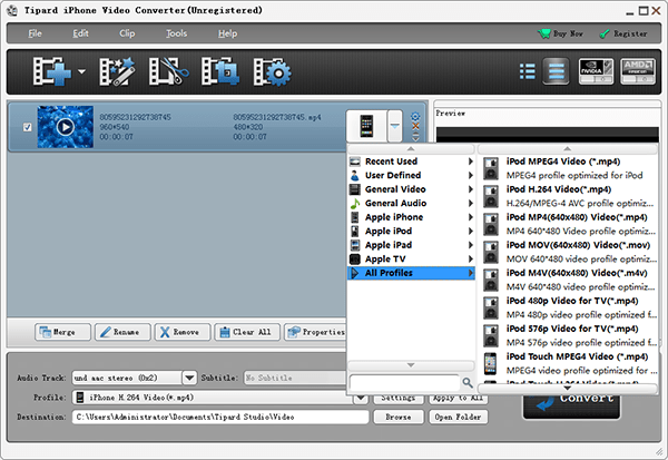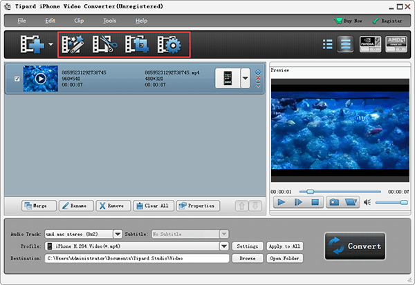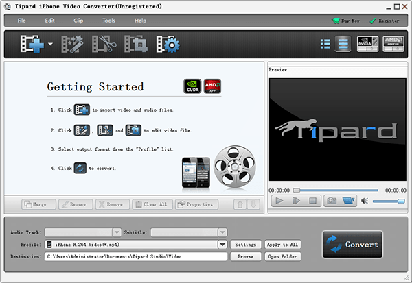 Tipard iPhone视频转换器是iPhone最实用、最容易使用的视频文件转换器。它可以将包括高清视频在内的几乎所有视频转换为iPhone、iphone3g/3GS/iphone4的MP4和H.264视频格式。这个iPhone视频转换器还可以从任何视频中提取音频,并将音频转换为iPhone/iphone3g音频格式。这个多功能的iPhone视频转换器也是一个视频编辑器,它可以连接视频、分割视频、裁剪视频播放区域、水印视频和编辑视频效果。