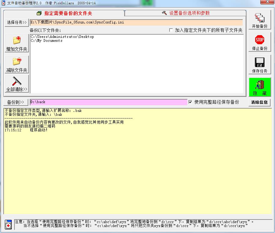 文件自动备份程序(SyncFile) V2.0 绿色版