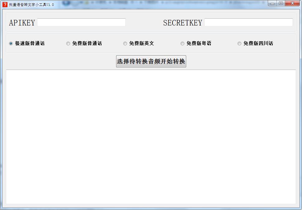 软件上方的APIKEY和SECRETKEY需要去百度AI网页的语音识别板块上申请,完全免费的申请。