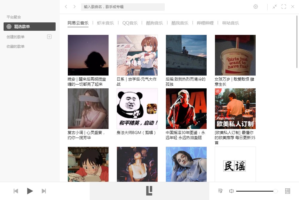 快速切换网易云音乐、虾米音乐、QQ音乐等主流音乐平台,并支持全平台搜索。