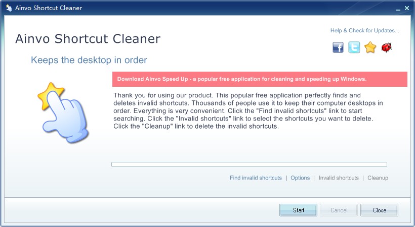 Ainvo Shortcut Cleaner是很具专业性的清理快捷方式工具,能够使用者快速清理无效的快捷方式,给用户一个干净整洁的系统。采用强大的扫描引擎可以对磁盘进行深度扫描,快速查找系统中的无效快捷方式,删除。