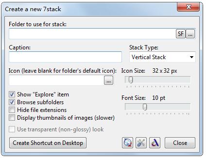 7stacks非常容易使用,并且有各种不同的外观和功能,允许任何人按照自己的意愿定制他们的堆栈外观。使用Windows 7,通过右击任何堆栈,并在JumpList中选择 “创建新堆栈”,就可以轻松创建新的堆栈。7stacks会在你的桌面上放置一个新堆栈的快捷图标,你可以将其钉在Windows 7任务栏,或Vista或XP快速启动栏上。