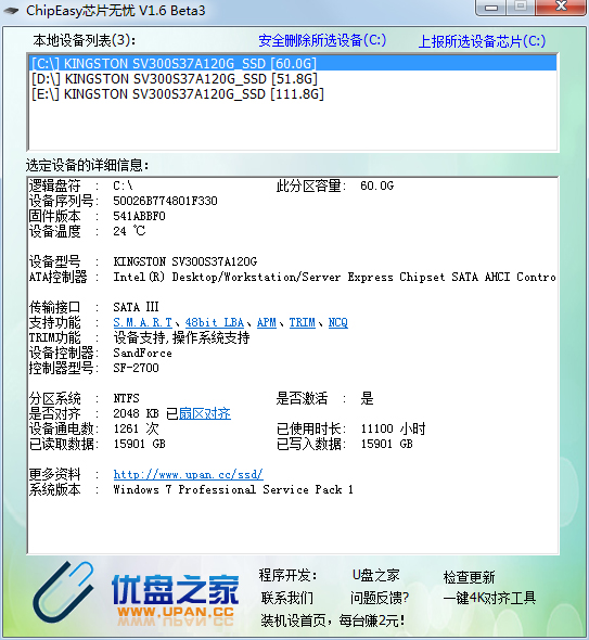 芯片无忧1.5支持检测固态硬盘信息啦,带了群联芯片检测工具,主要是针对仿冒群联的U盘做彻底检测,所以本工具的bin目录不能删除; 芯片无忧的结果无法做到100%的精确,数据维护量非常大,若大家发现查询的芯片存在误判,查询结果不正确,请将正确的信息提交给我们,这样才可以方便以后的朋友。