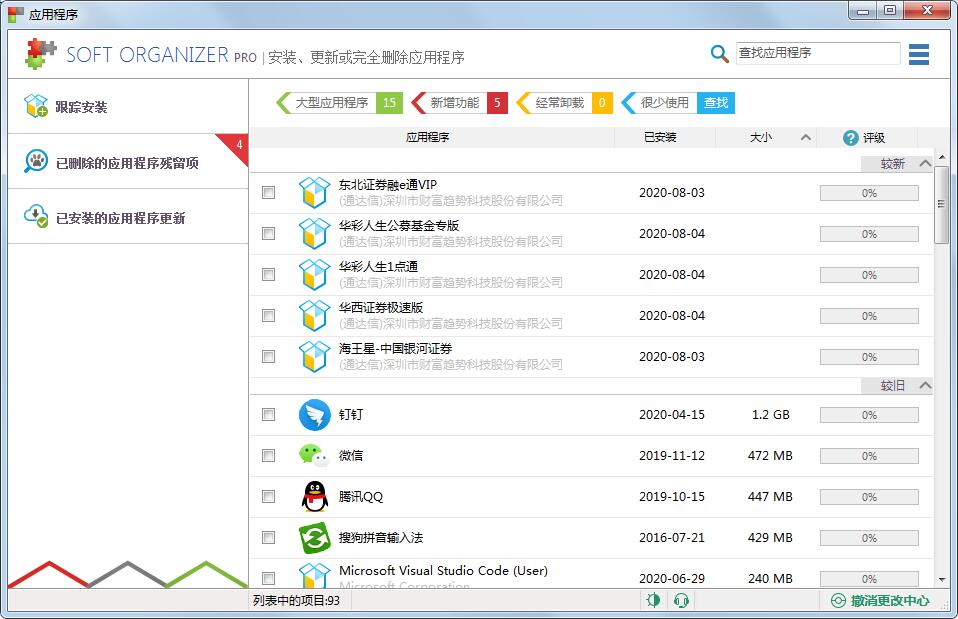 它监控所有软件在安装过程中对系统所做的更改。您可以轻松地了解在安装过程中哪些文件或注册表项进行了修改,利用这些数据,Soft Organizer可以有效删除应用程序。它也具备软件更新提醒功能。通常,在删除系统中的程序后,它们的痕迹仍然存在,磁盘和注册表项上的不必要的文件和文件夹。即使应用程序被所有规则删除,使用其自己的卸载程序(一种删除其开发人员创建的程序的工具)也会发生这种情况。Soft Organizer(以前称为完全卸载)旨在解决此问题:它将从系统中完全删除不需要的应用程序。