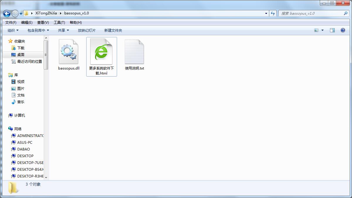 (2)将bassopus.dll文件放到提示丢失的文件的程序目录下。