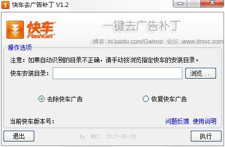 快车去广告补丁是为了让广大网民使用清爽无广告的快车而开发的,能够去除快车顶上横幅图片广告、右下角弹出广告、新建窗口广告、推荐资源广告等等;如果你的电脑系统盘分区格式不为ntfs格式,可能去广告效果不是很好,这时候你可以通过补丁上的 转换格式按钮来解决。