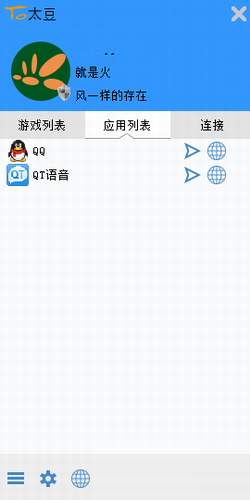 3.连接列表页分左右两项,左侧有游戏连接状态,右侧为应用连接状态。