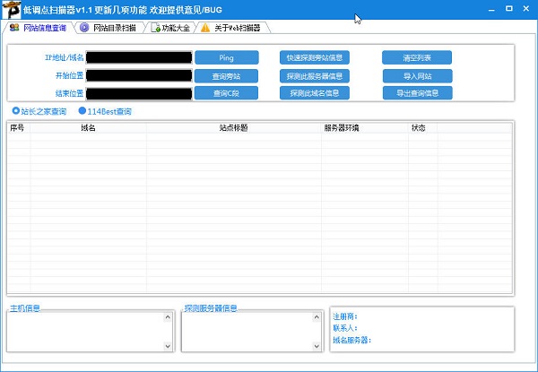 低调点扫描器官方版是一款相当优秀的网站安全扫描软件,低调点扫描器官方版功能强劲,便捷好用,能够对网站进行安全扫描,支持asp,PHP,ASPX,JSP等程序语言,并且能够为站长朋友获取同IP下的所有域名网站。