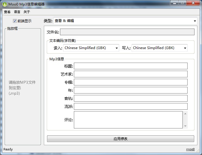 Moo0 Mp3信息编辑器 V1.19 多国语言绿色版