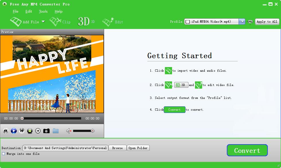 Free Any MP4 Converter Pro是一款十分受欢迎的MP4视频格式转换器,可以将MP4视频转换成其他常见的视频格式,比如MPG,AVI,3GP,WMV,MOV,M4V等。