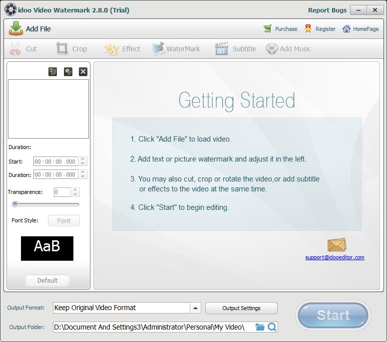 idoo Video Watermark是一款十分专业且实用的视频加水印软件,可以快速为视频添加自定义文字或图片水印,并且支持水印在视频中存在的起始时间和结束时间,此外,在对视频进行水印处理的同时,可以将视频转换为其它格式,视频加水印与转换一键完成。