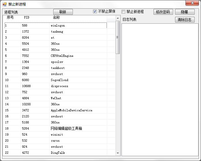 禁止新进程工具是一款小型的系统进程禁止工具,它适用于打造儿童上网安全环境,通过禁止新进程用户能够有效的杜绝孩子在上课的时候做其它的事情,软件使用方法很简单,而且非常高效。