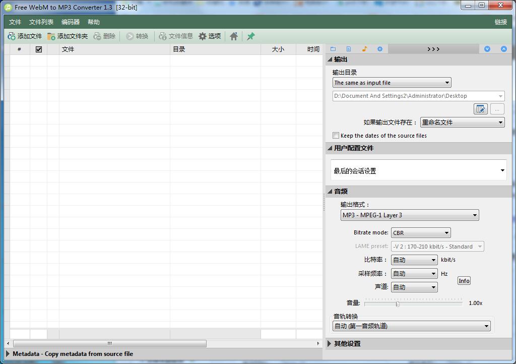 Free WebM to MP3 Converter最新版也支持对音量进行调节、对音轨的转换支持;